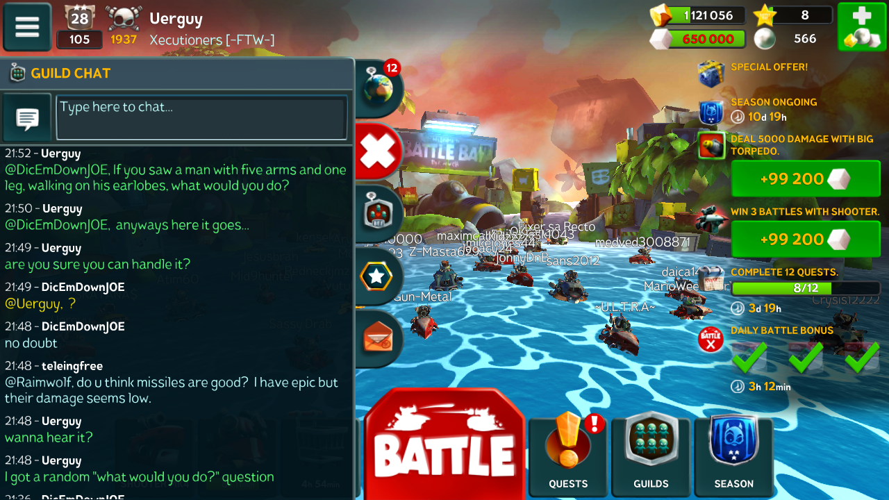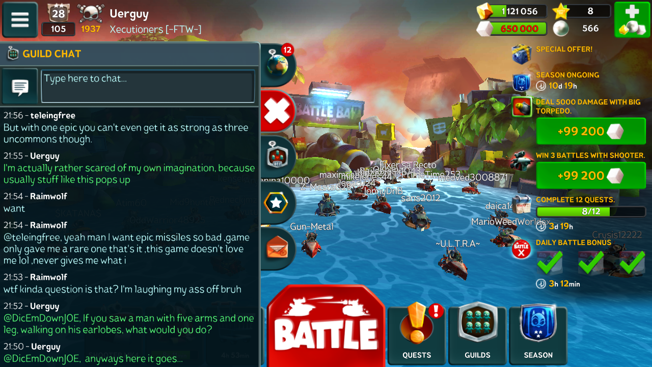 And no one mentions good ol' Sewerguy, huh? I remember back when guilds were something completely optional. You were invited to a guild because people liked you, not because they needed another cog in the machine. And you stayed there because they wanted to have you around not because you reached a trophy requirement. Back then, we were friends, but now we're just business partners... Guild chats aren't as active as they were in the past. Not that writing something in there matters anymore.