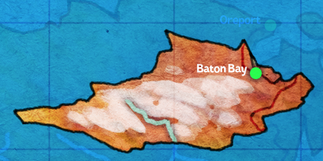 From these maps posted by @Dmg don, we can tell where the "Capital" of Baton Bay wound up on the Home Island: