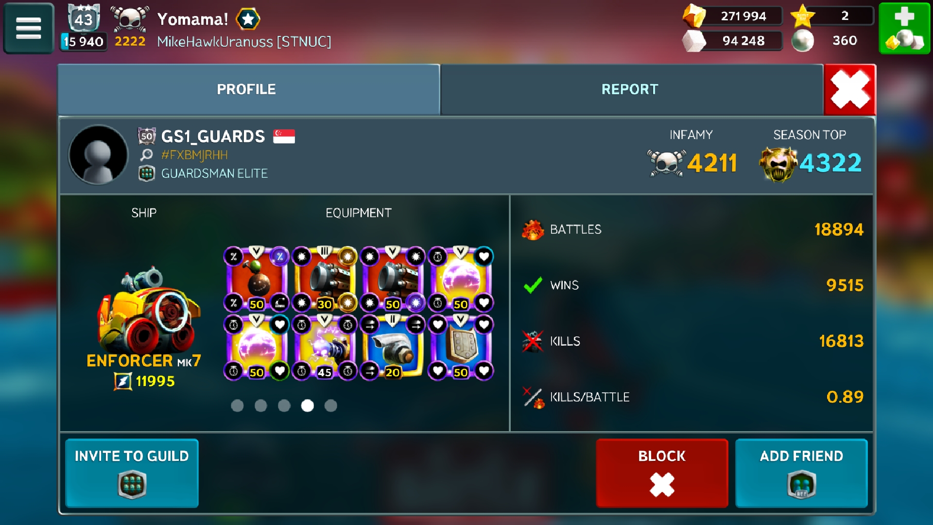 It's right there in front of your face and you have to mix my gs on my ships up so you can still be right. I only played first few as a shooter and switched to defender since it can take more hits. All the screens I took are with my 8 k gs defender. Smh