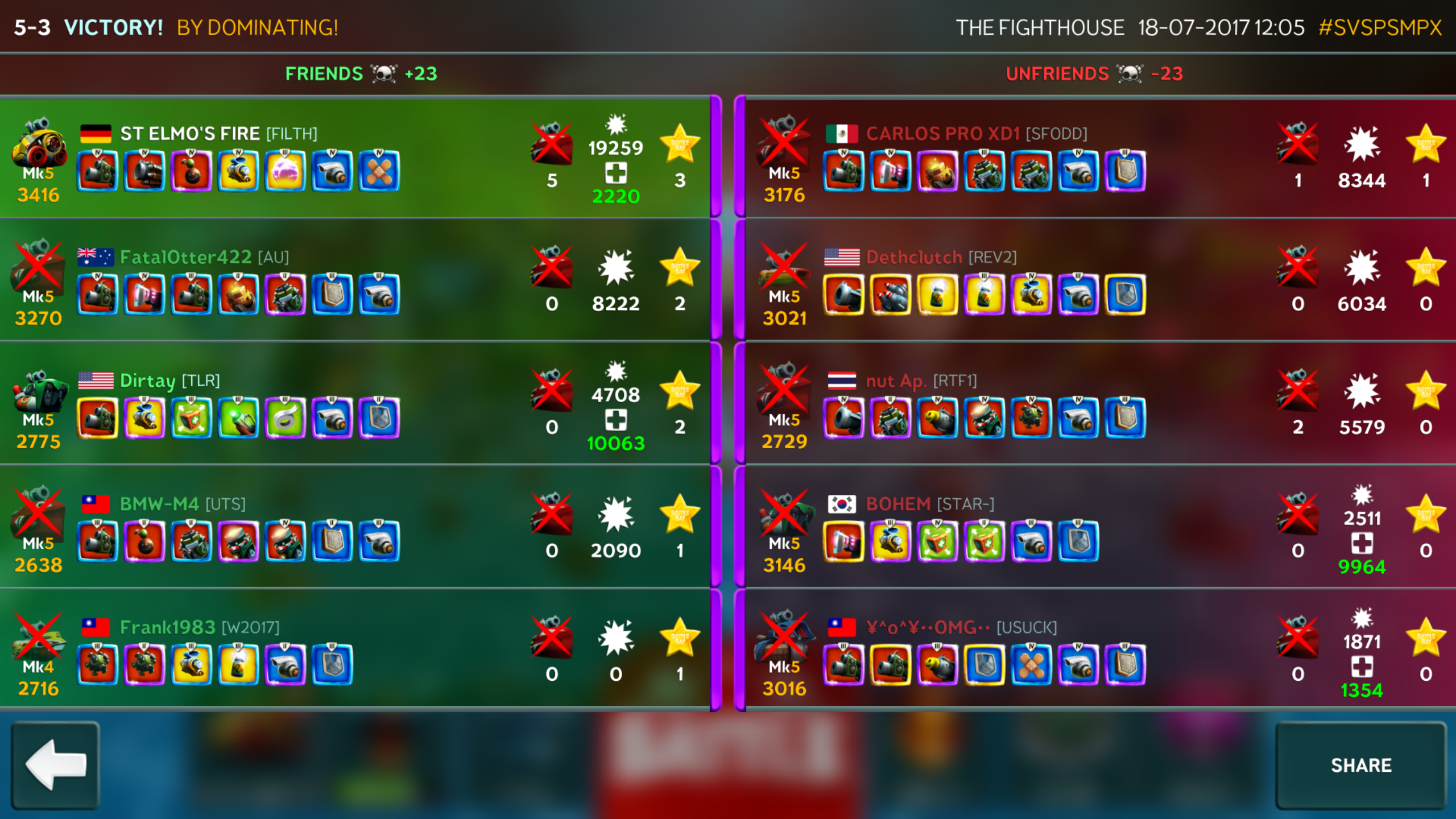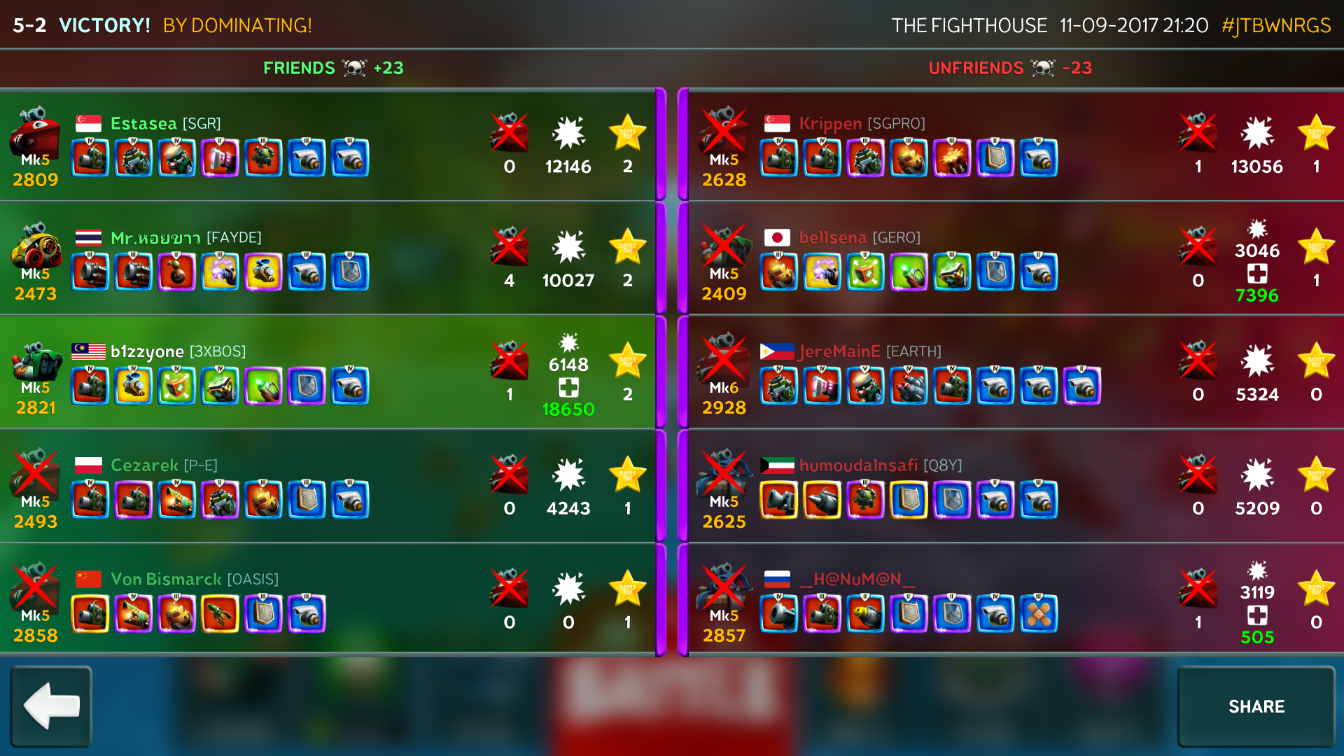 Nice topic btw and very true not to give up even if you have a floater or two. Had this battle earlier in the week where the enemy team was gradually making their way towards our spawn via the middle capture zone. Enemy noticed the afk and quickly put him down and by that time, we were down 2 while enemy was down 1 while I was getting bombarded like crazy, was even in the red at one stage.