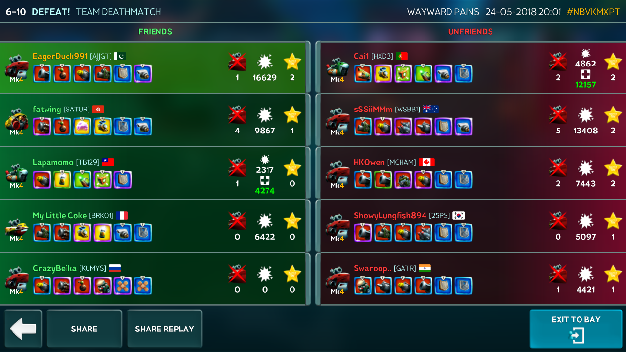 Hey please check out our new forum Suggestions and Ideas found in the area "The Bay" - as we love all your ideas and want to collect them in one place, - please use it going forward. :) Thanks already for helping to make Battle Bay an even better experience. Remember: If your idea already exists - simply add your comment or like to an existing one so we avoid duplicates.Dismiss Notice