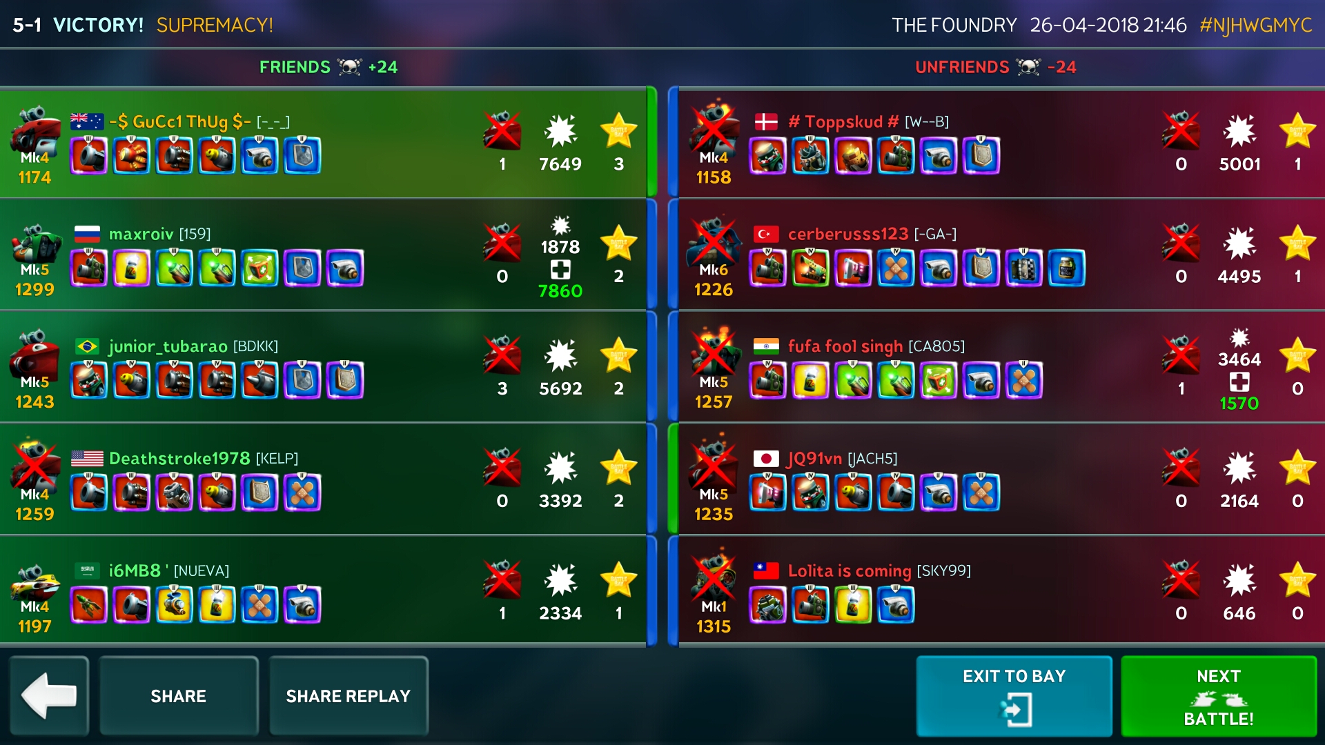 Hey please check out our new forum Suggestions and Ideas found in the area "The Bay" - as we love all your ideas and want to collect them in one place, - please use it going forward. :) Thanks already for helping to make Battle Bay an even better experience. Remember: If your idea already exists - simply add your comment or like to an existing one so we avoid duplicates.Dismiss Notice