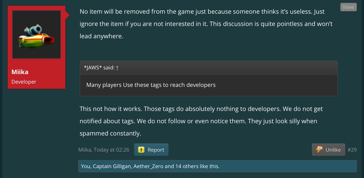 Hey please check out our new forum Suggestions and Ideas found in the area "The Bay" - as we love all your ideas and want to collect them in one place, - please use it going forward. :) Thanks already for helping to make Battle Bay an even better experience. Remember: If your idea already exists - simply add your comment or like to an existing one so we avoid duplicates.Dismiss Notice