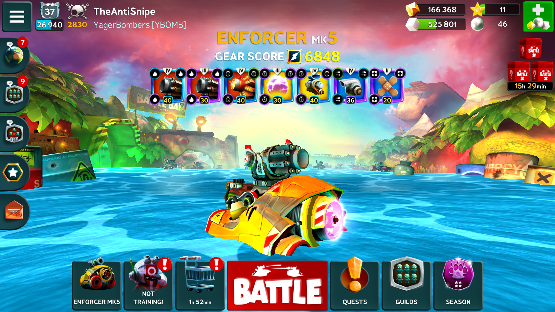 From the 1st sec, target is at range 40, blast hit range is 22. Blast user spends 18 secs to move to within shooting range (I assume it takes 1 sec to move 1 range, which I consider is slow. Yellow boats with nitro and OB can move much faster in actual battles to within shooting range of Blast), so 4 mins 42 secs left, which allows blast user to shoot 26 times (282 secs divided by 11.1 secs cooldown).
